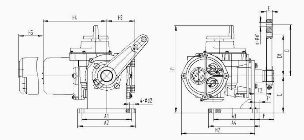 | Actuator parametri \ actuator cubits | A1 | A2 | A3 | A4 | C | D1 | D | E | F | F1 | F2 | H1 | H2 | H3 | H4 | H5 | n-φD1 | IV-φd2 |